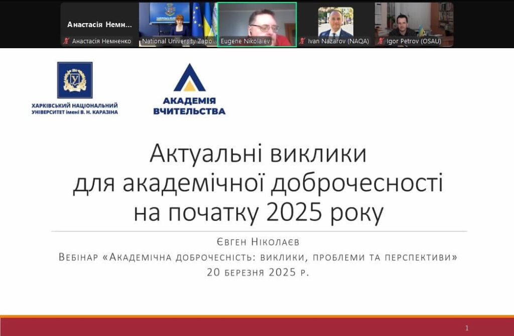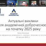 - Євгена НІКОЛАЄВА, заступника директора Академії вчительства, який представив аналітичні виклики для академічної доброчесності.
