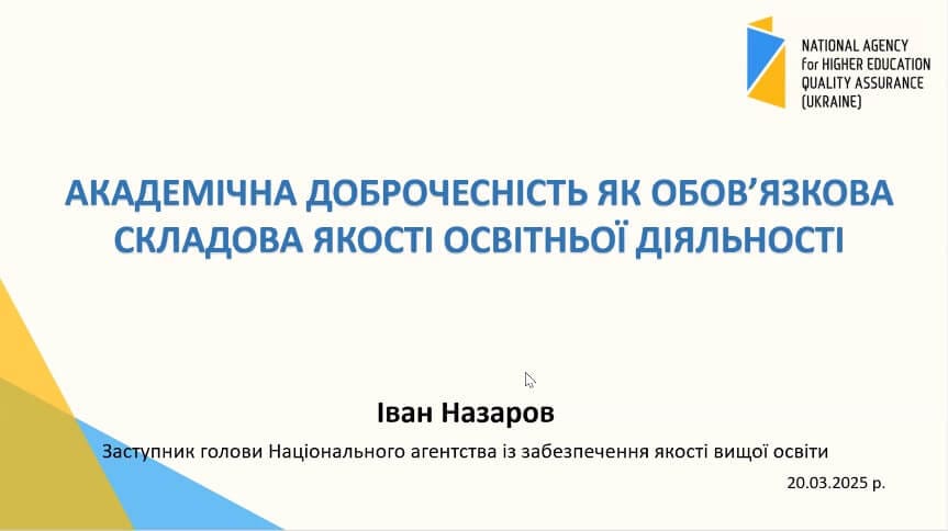 - Івана НАЗАРОВА, заступника голови Національного агентства із забезпечення якості вищої освіти, який пояснив, чому академічна доброчесність є невід’ємною складовою освітнього процесу.