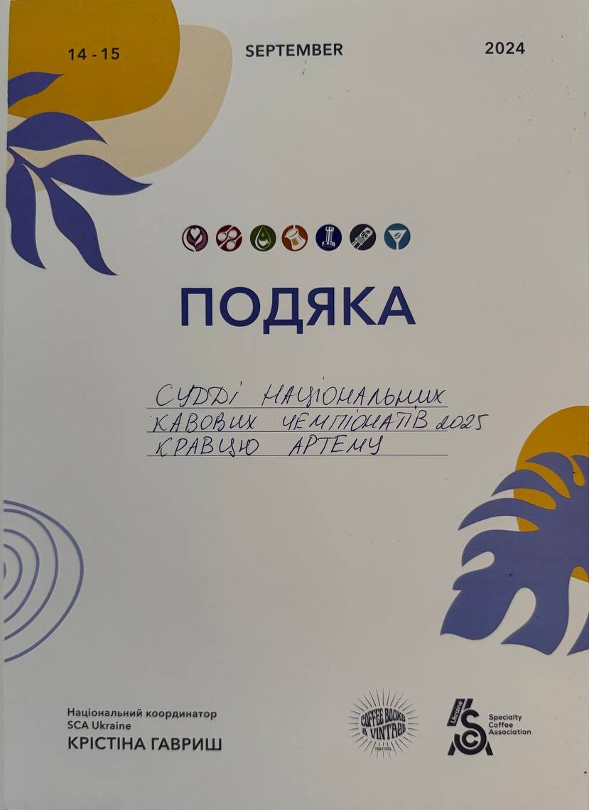 З 2017 року старший бариста мережі ONE LOVE coffee, Київ