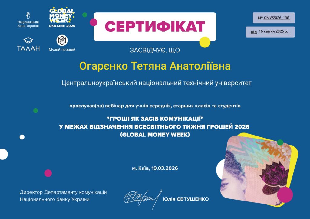 - Кандидат філологічних наук з 2004 року за спеціальністю 10.02.01 «Українська мова», диплом ДК № 025150 від 16.09.2004 рік