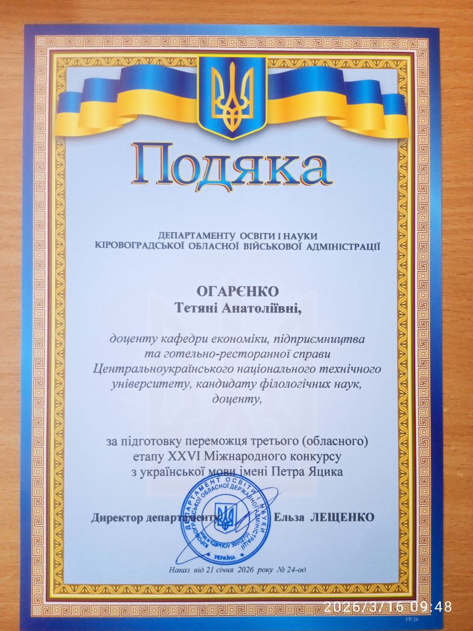 З 2025 року – доцент кафедри економіки, підприємництва та готельно-ресторанної справи