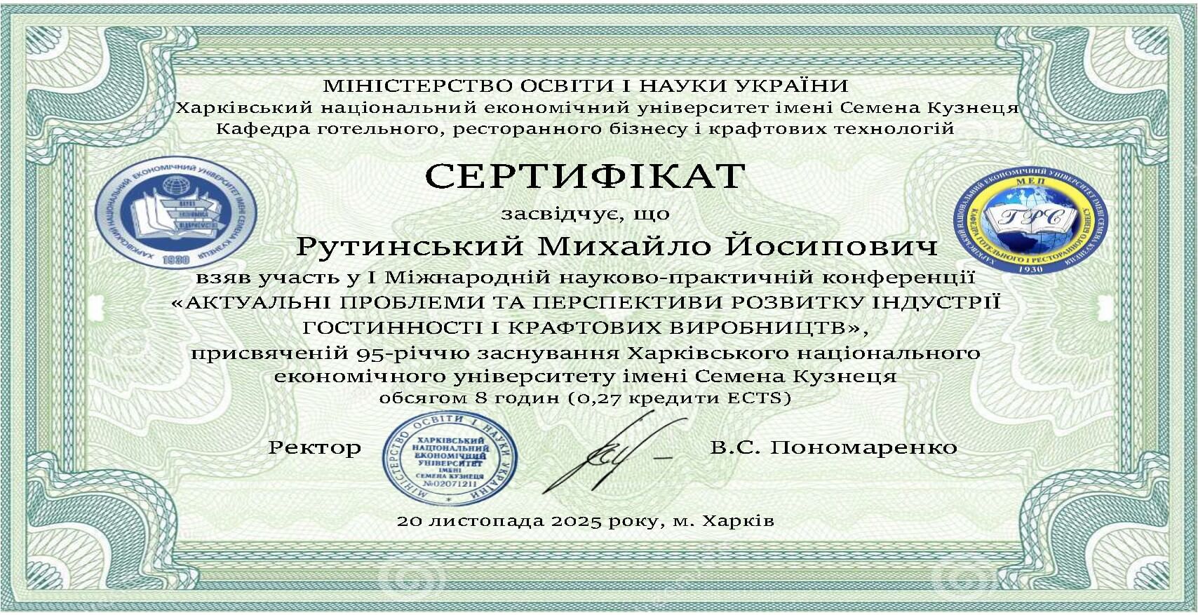 З 2024 р. гарант ОПП «Готельно-ресторанний бізнес» за другим (магістерським) рівня вищої освіти за спеціальністю 241 «Готельно-ресторанна справа»