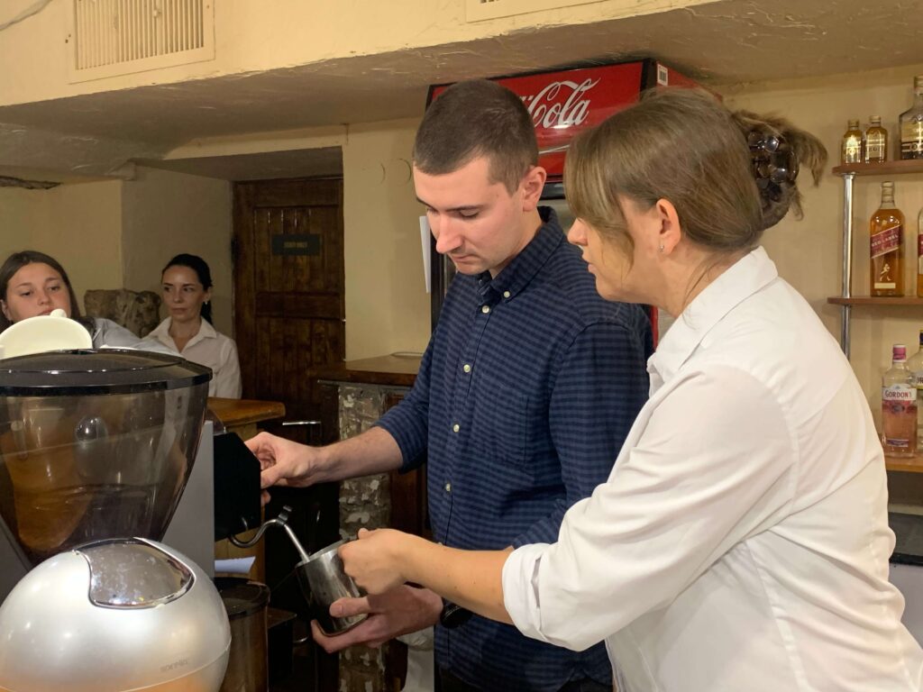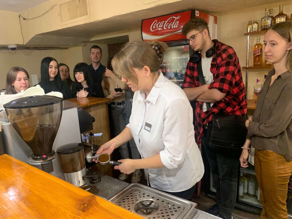 Студенти дізналися про різновиди зерен, правильну техніку заварювання та мистецтво створення лате. Після теоретичної частини учасники перейшли до практики, де під чуйним наглядом професіонала самостійно приготували каву. Студенти були в захваті від отриманих знань, навичок та можливості створити власну чашку кави.