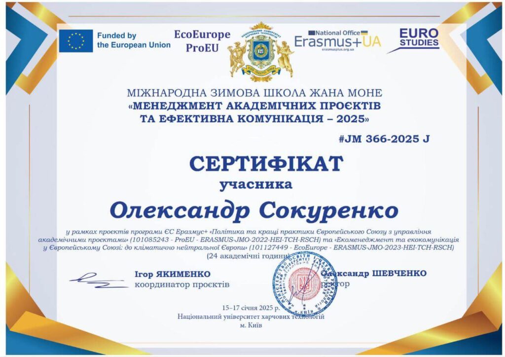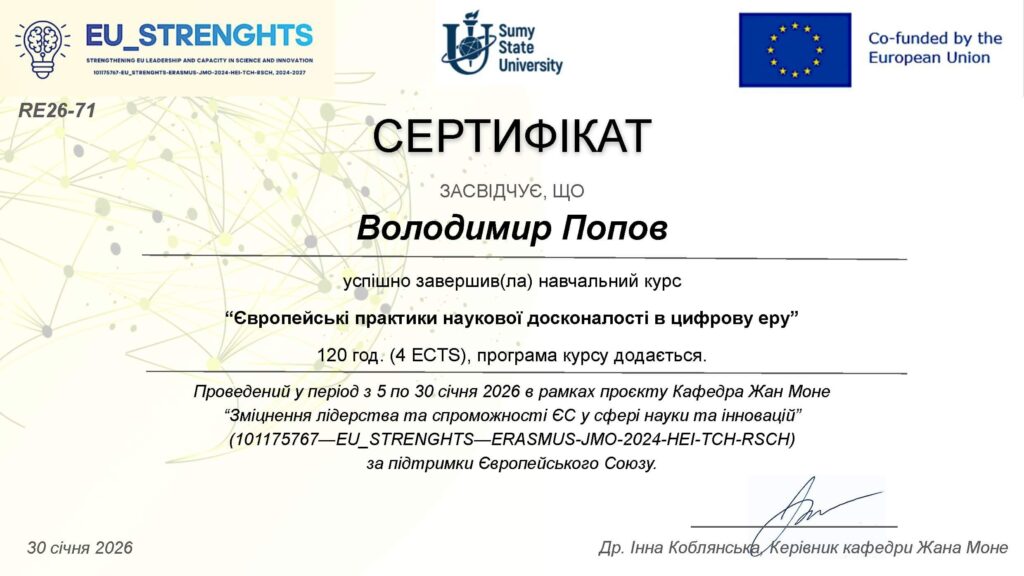 Сертифікати здобувачів наукового ступеня «Доктор філософії»