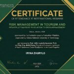 Важливою складовою вебінару стало представлення прикладів реальних ситуацій та шляхів їх вирішення, що дало змогу учасникам побачити, як теоретичні підходи до управління ризиками реалізуються на практиці в умовах туристичних дестинацій, готелів та івент-індустрії. Аналіз практичних кейсів сприяв глибшому розумінню природи кризових явищ, причин їх виникнення та можливих сценаріїв реагування, а також формуванню навичок прийняття управлінських рішень в умовах невизначеності.