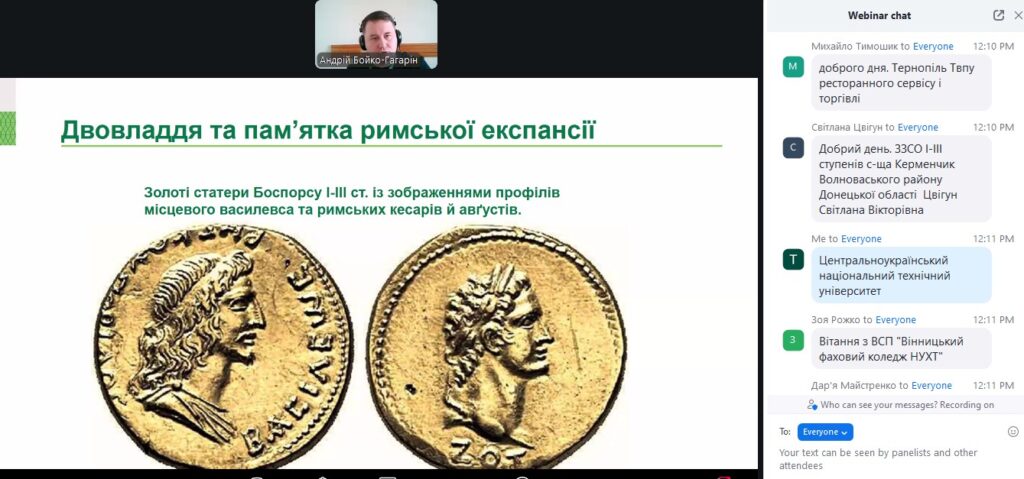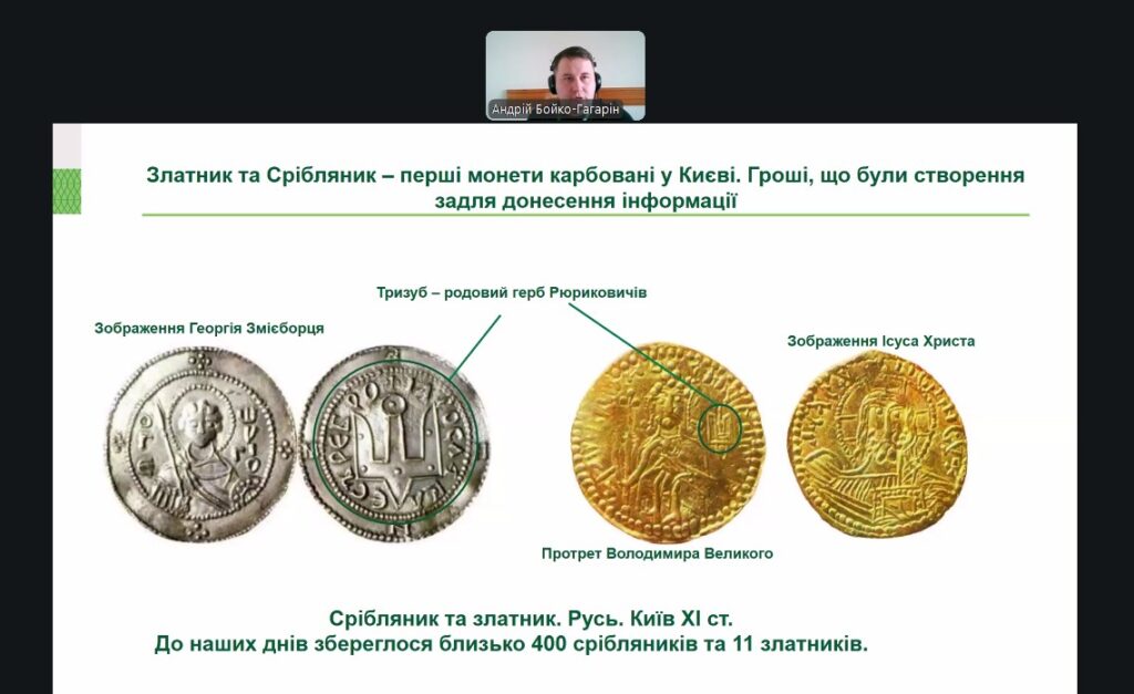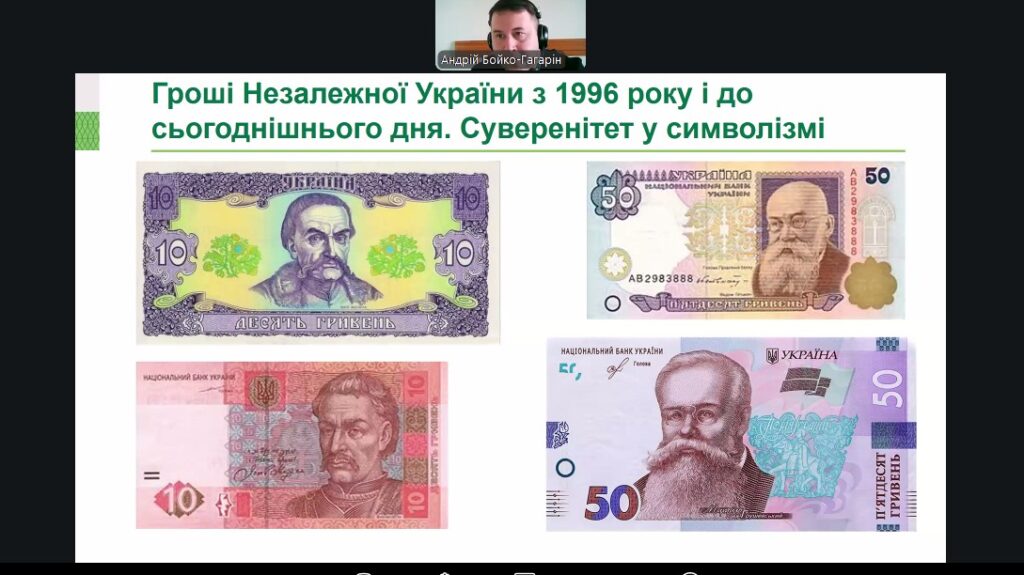 Під керівництвом доцента Тетяни ОГАРЄНКО студенти взяли участь в онлайн-заході ‒ вебінарі на тему «Гроші як засіб комунікації», який провів Андрій БОЙКО-ГАГАРІН ‒ старший зберігач фондів Музею грошей Національного банку України.