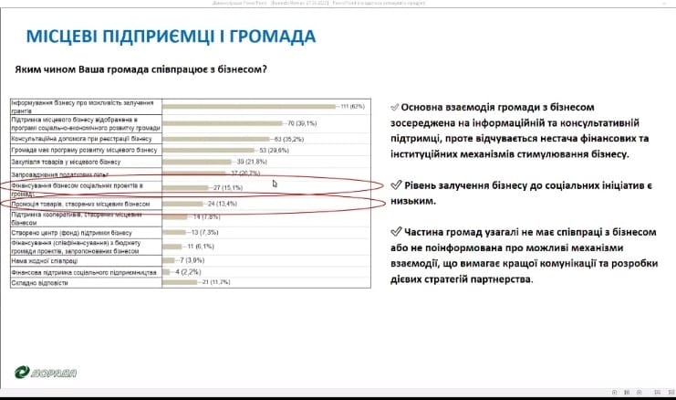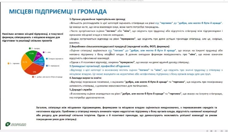 У межах заходу виступили провідні експерти з України та Латвії. Роман КОРІНЕЦЬ, директор Національної асоціації сільськогосподарських дорадчих служб України, презентував результати опитування на тему «Співпраця бізнесу, влади та громадськості задля розвитку місцевої економіки». У своїй доповіді він акцентував увагу на ключових викликах взаємодії між цими секторами та наголосив на важливості залучення місцевих громад до процесу прийняття рішень.